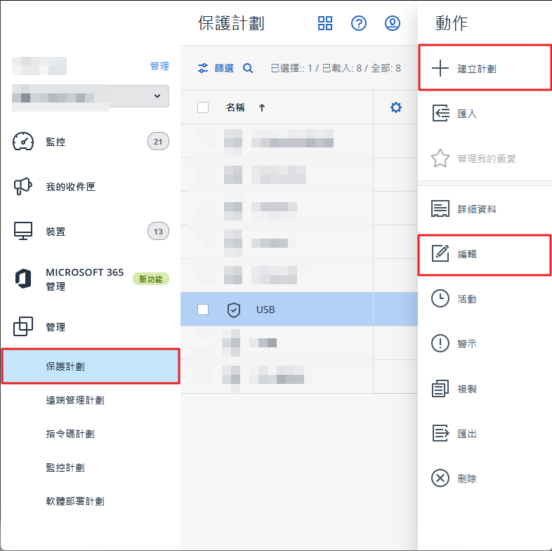 1. 開啟Cyber Protect 主控台中保護計劃的「裝置控制」內啟用並設定裝置控制模組。
